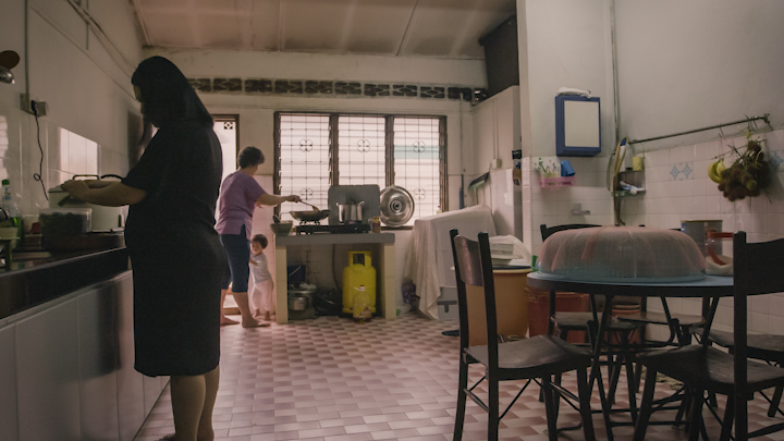 明福的妹妹丽兰拥有六个月的身孕,前一晚才从吉隆坡回来。她看起来很累但还是坐在厨房的圆桌子,和母亲一边谈聊天一边剥洋葱。