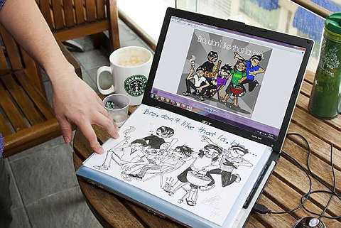 Unlike Jian and Ernest who draw their comics straight on the computer, Pauline Low Pou Leen and Tan Wai Kit both use the old school method of drawing with a pen, and on paper. They then get their drawings scanned, and digitally coloured. Such method can take up to two to six hours to complete.