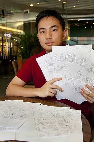 Ernest Ng shows off a wallpaper that he sketched and then later digitzed.