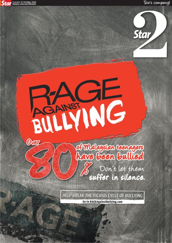There are no two ways about it – Malaysians teens are being bullied, and they have no one to turn to. Statistics show over 80% have been bullied, and things are only just getting started with cyberbullying. So we at R.AGE decided to come create the R.AGE Against Bullying campaign to spread a little hope and positivity to those currently struggling with bullying. To find out more, go to RAGEAgainstBullying.com.