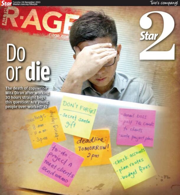 We know this follow-up to Indonesian copywriter Mita Diran’s death, apparently from over-working, was only published last week, but as you start the new year, we thought you could use a reminder on how important it is to not over-work yourself. Statistics from 2011 showed that 15% of Malaysians work over 11 hours a day, compared to the global average of 10%. So this year, learn to work smart, be effective, and find ways to achieve a healthy work-life balance.