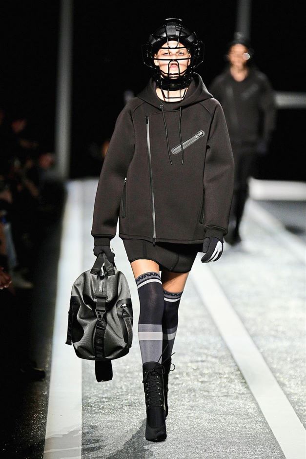 The effect was akin to a futuristic, military-esque sports team, with its heavy use of neoprene, leather, mesh, and quick-dry fabric.