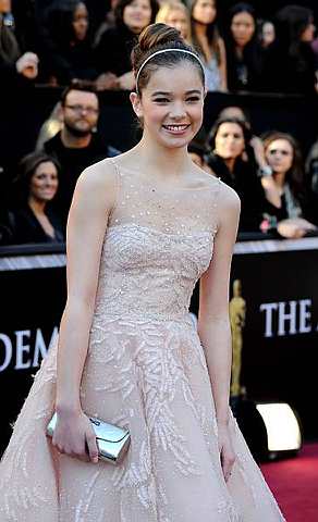 I resist the urge to gush over Oscar’s best supporting actress nominee Hailee Steinfeld’s gorgeous Marchesa gown and instead, compliment her on her choice of a tiny clutch.