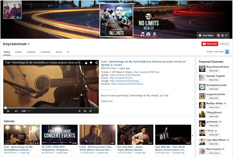 Boyce Avenues YouTube channel has garnered over 6 million subscribers