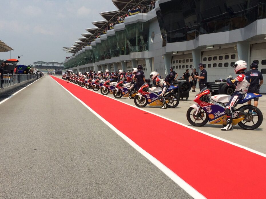 The Asia Talent Cup riders wait patiently for their race to begin.