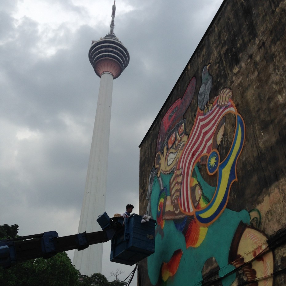 Cloakwork working on his mural for Petronas’ #tanahairku Street Art project along Jalan Raja Chulan, the biggest he has ever worked on.