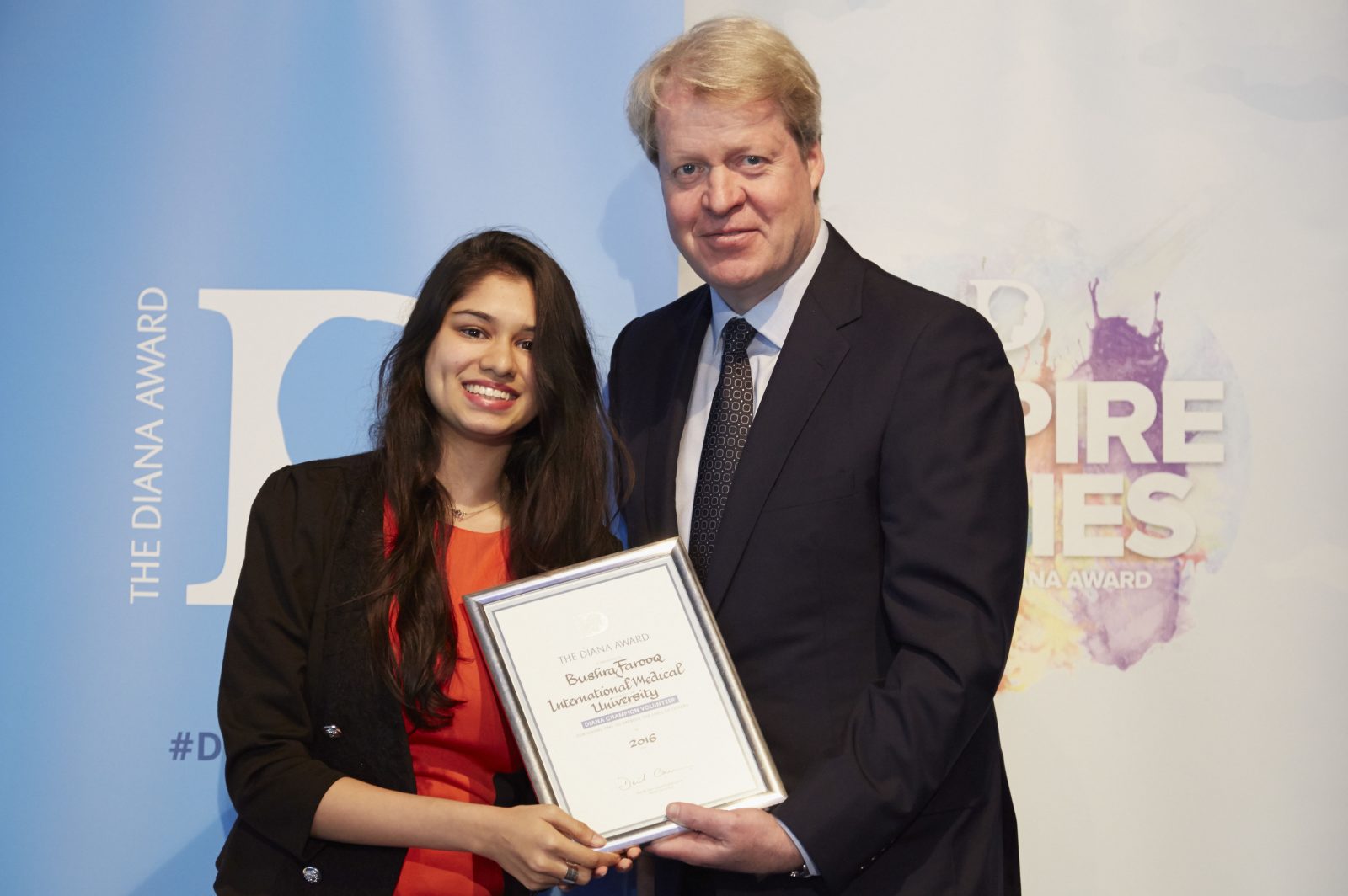She was honoured as the Regional Award winner in the Diana Champion Volunteer category, one of 80 youths worldwide – youth ambassadors, humanitarians, sports leaders, etc. – recognised for their work.