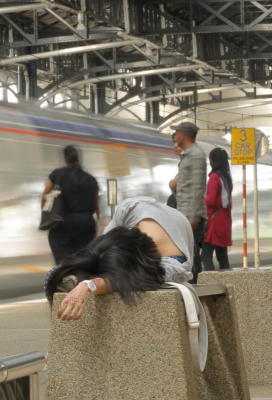 At the point when I felt all hope for humanity was lost, lying there “in pain” on a bench, two ladies came up. They were your typical makcik-next-door, carrying some bulky suitcases.