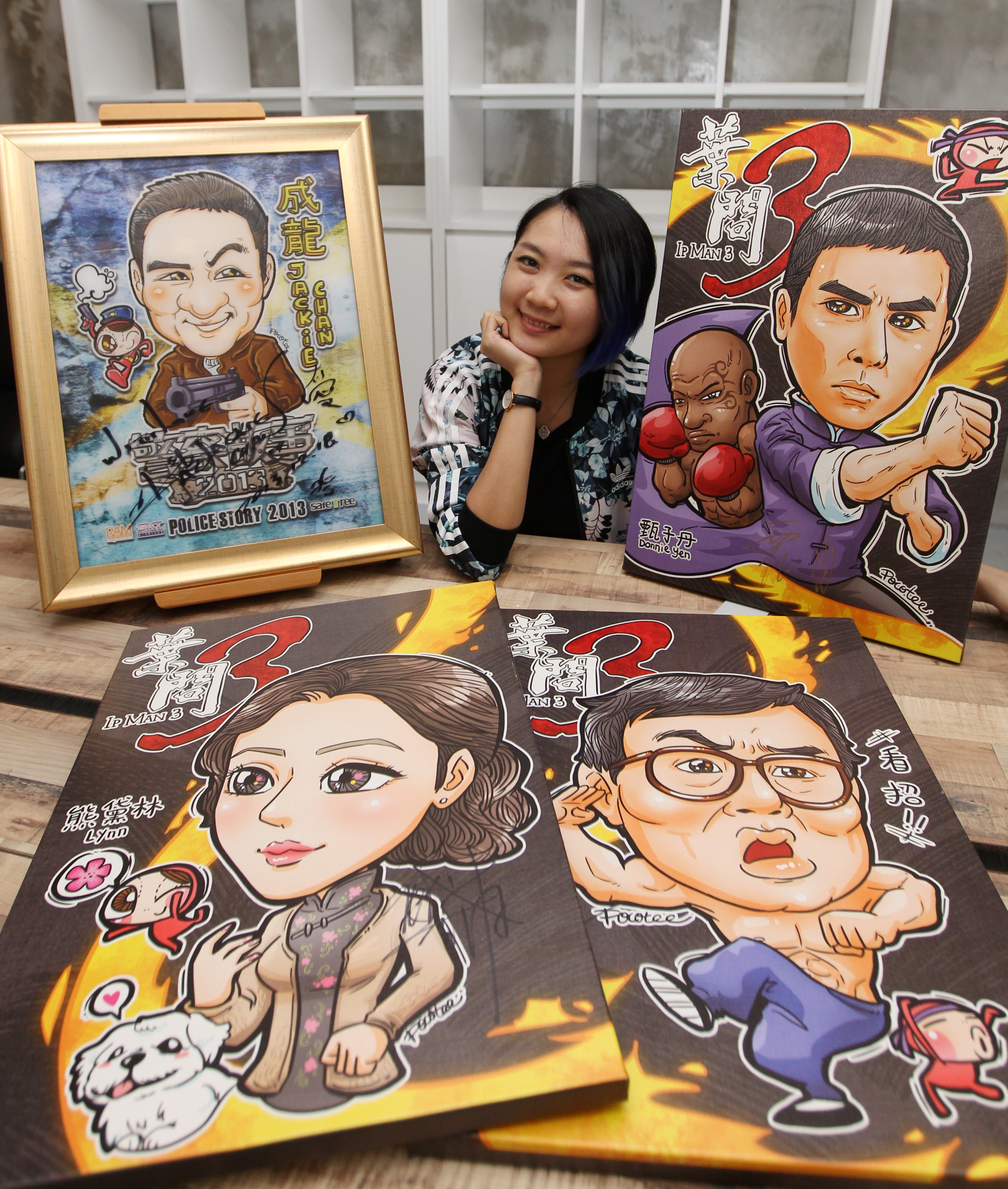 The walls of Safetree are decked out with Loh’s work. Probably the most eye-catching ones are her caricature-style sketches of movie posters like Ip Man 3, Pixels and Police Story 2013.