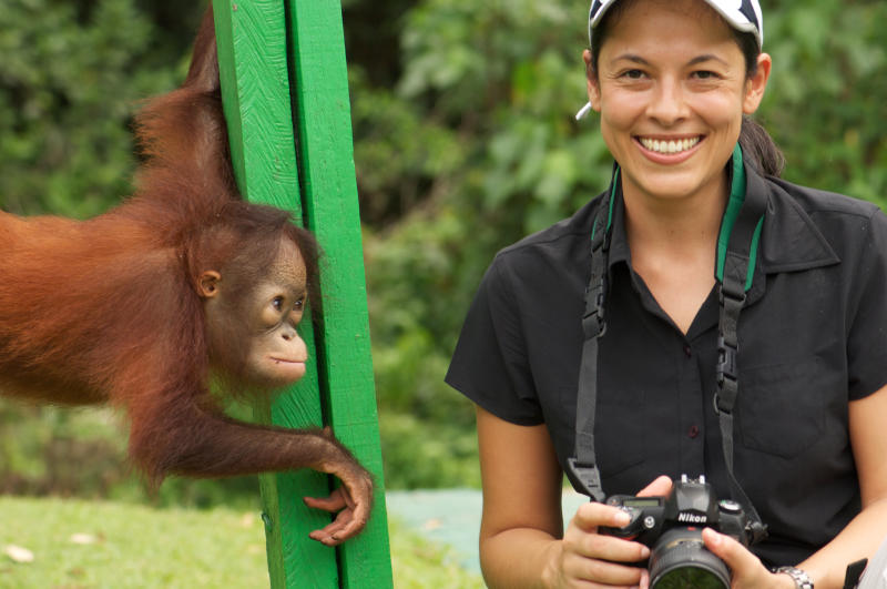 Teoh during the filming of ‘Great Apes with Michelle Yeoh’, filmed at Sepilok Rehabilitation Centre, Sabah. Photo: Lina Teoh.