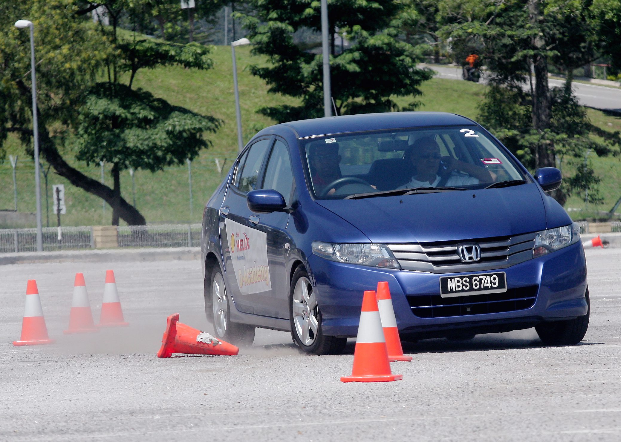 They got to slam the brakes on a car running at 60km/h, drift through an oil slick to learn how to correct an oversteer, and drive through a slalom course as fast as they can while using the proper steering techniques.