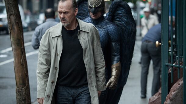 And its lead, Michael Keaton takes a tumble after accepting his award…