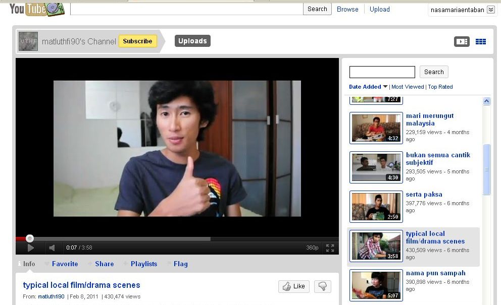 Matluthfi90 then created a YouTube channel to share his videos with friends.