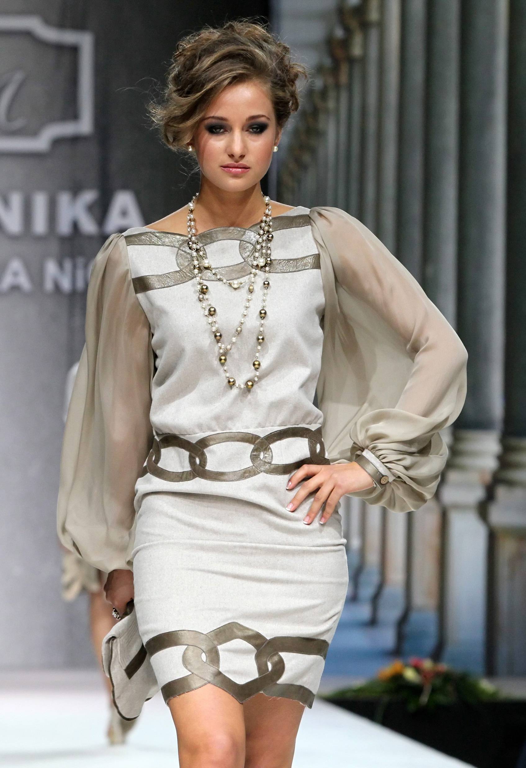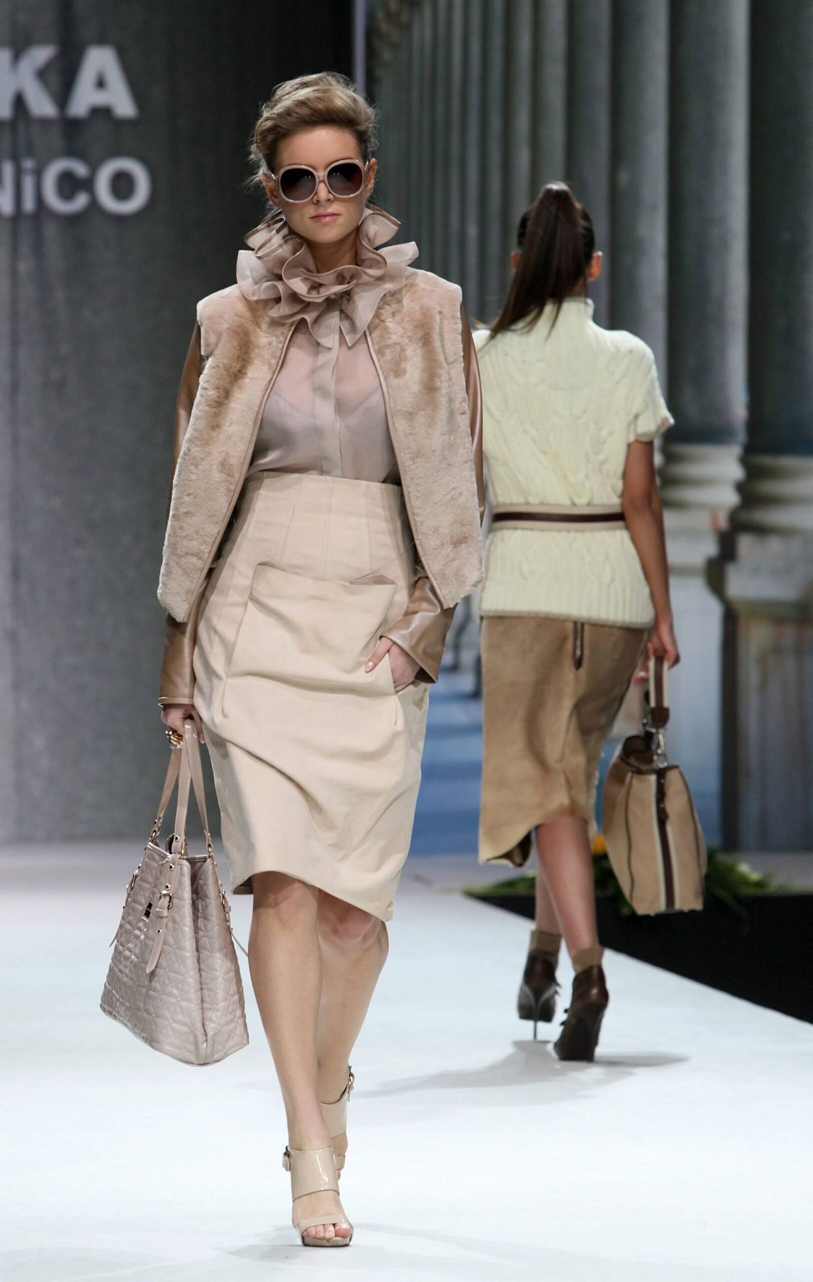 A model presents a creation by Veronika Niko fashion house at the Volvo Fashion Week Moscow Fall-Winter 2011, in Moscow, Russia