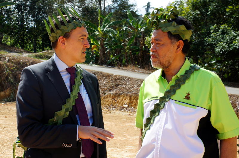 EU delegation to Malaysia, counsellor Marcel Roijen (left) and Dusun Tua state assemblyman Razaly Hassan were present for the launch and they discussed the welfare of the indigenous people and efforts to improve their living conditions.