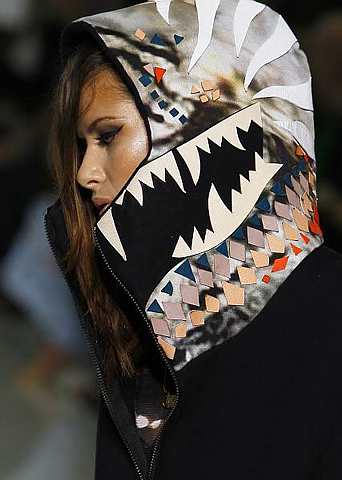 Kanye’s fashion line was launched last weekend to mixed reviews. The Dw by Kanye West (ready-to-wear spring/summer 2012) collection was no doubt flashy, but many critics opined that there was no substance to it. Many found the plunging necklines, skin-tight pants and OTT (that’s, “over-the-top) accessories tasteless and tacky.