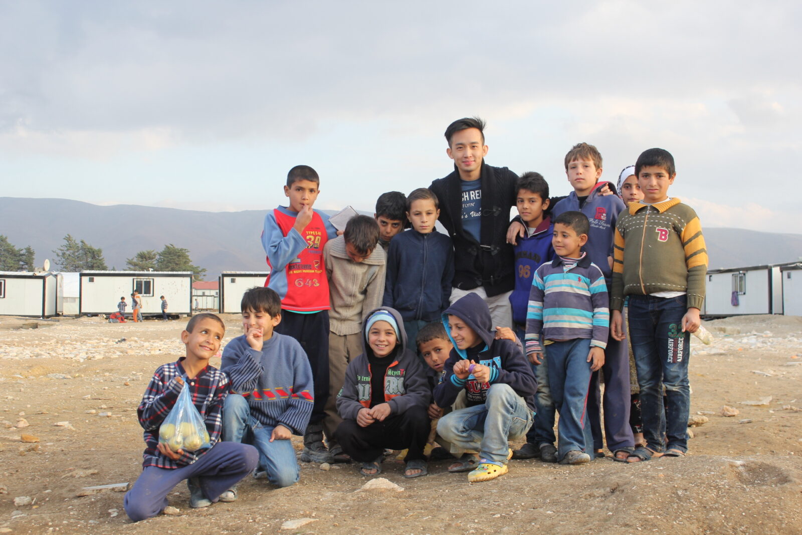 Lau with Syrian refugee children in Lebanon. He plans to cover the refugee crisis in Turkey in the near future.