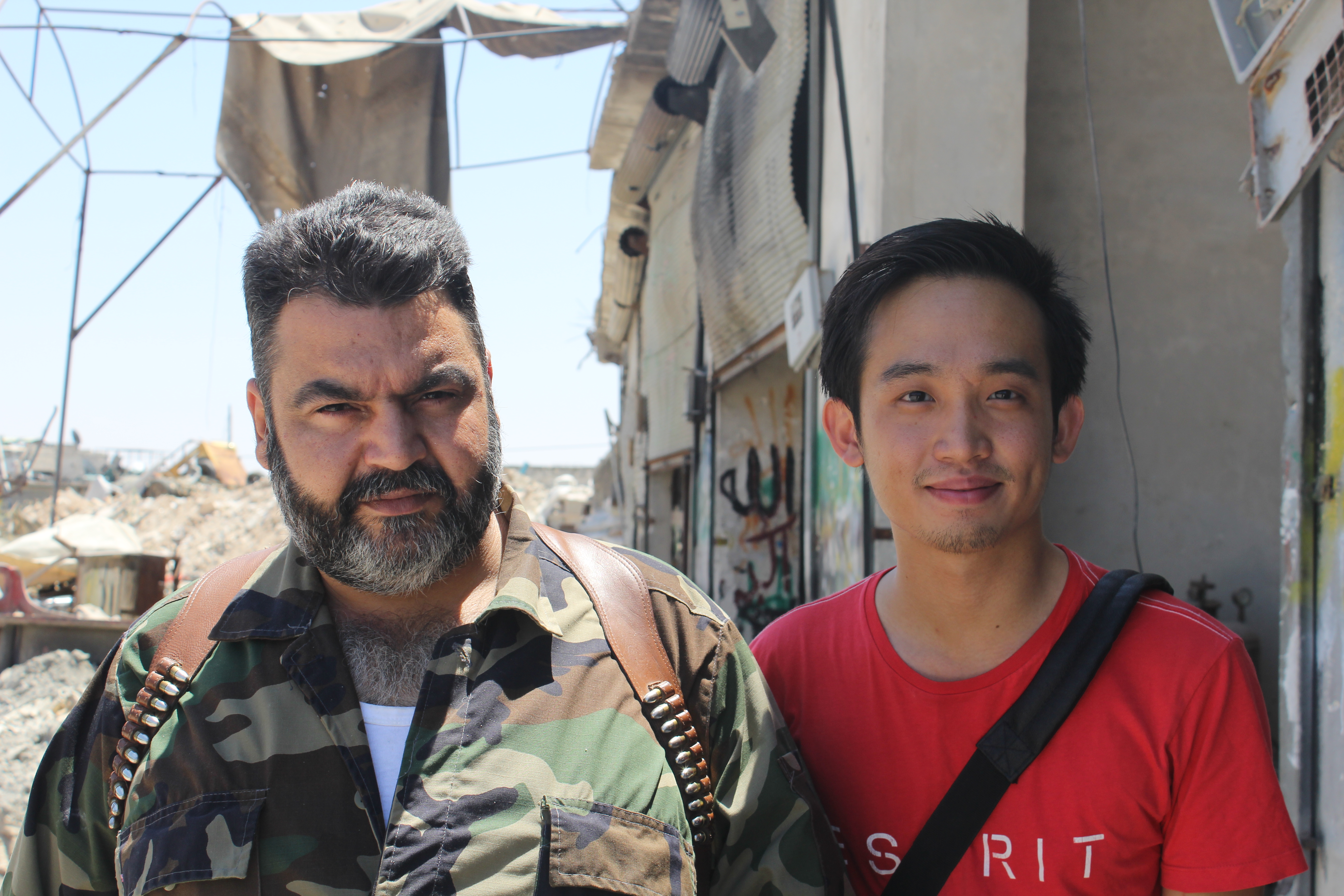 Lau with one of the commanders of the Free Syrian Army in 2012. The NGO that hosted him was based on the rebel-held part of Aleppo. Photo: Chris Lau.