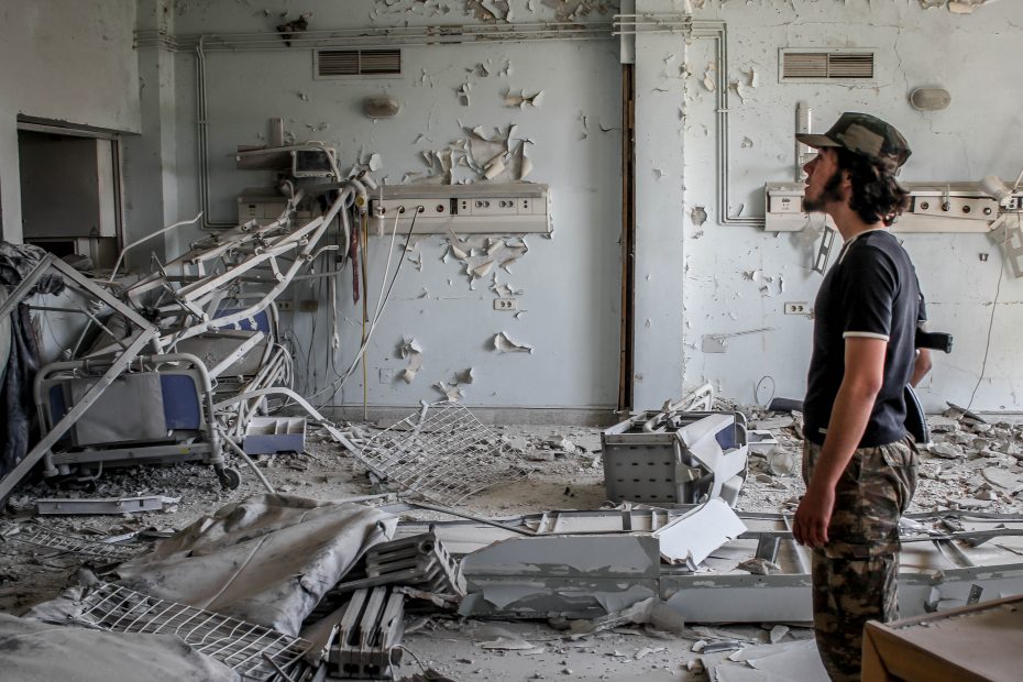A man surveys the remnants of a Syrian hospital after an airstrike. Lau hid in the basement with the hospital staff until it was over. Photo: Chris Lau.