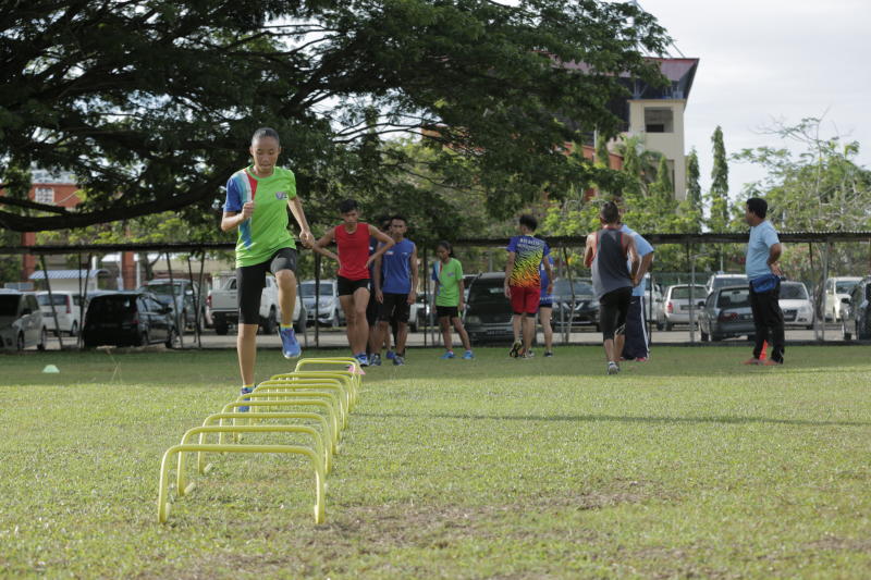 Felicia and the other para athletes jumping hurdles during their weekly training for the next ASEAN Para Games.