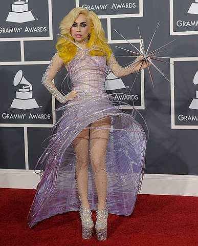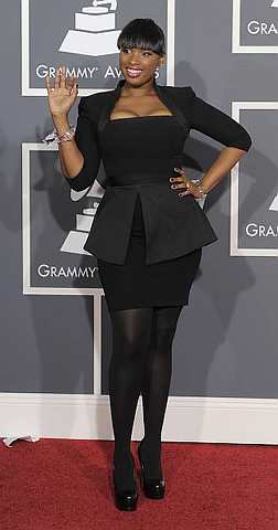 Jennifer Hudson paired her futuristic Victoria Beckham Collection ensemble with black tights, lucite bangles, and extra-high platform stilettos.