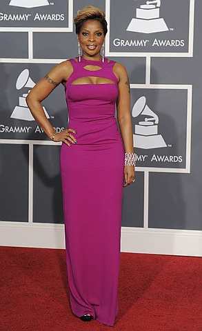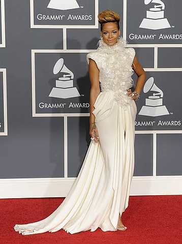 Beyonce in a formfitting blush satin gown from Stephane Rolland.