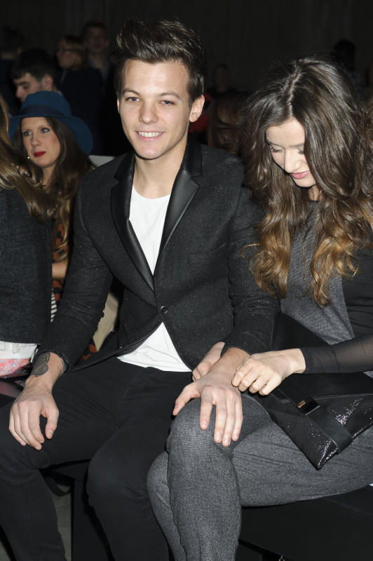 British singer Louis Tomlinson from the band One Direction and Eleanor Calder at the Unique collection during London Fashion Week.