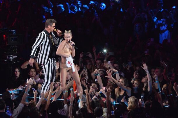 Remember when people thought that her “stripper pole” dance routine at the 2010 Teen Choice Awards was the worst thing Cyrus could do in her career? Well, she definitely shut those mouths last weekend. Or to be more accurate, got them to drop their jaws as she gyrated against Robin Thicke’s manhood while performing the latter’s Blurred Lines.
