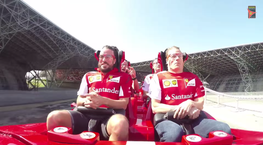 Okay, now check out Kimi Raikonnen’s reaction to the world’s fastest roller coaster: The Formula Rossa in Ferrari World, Abu Dhabi.