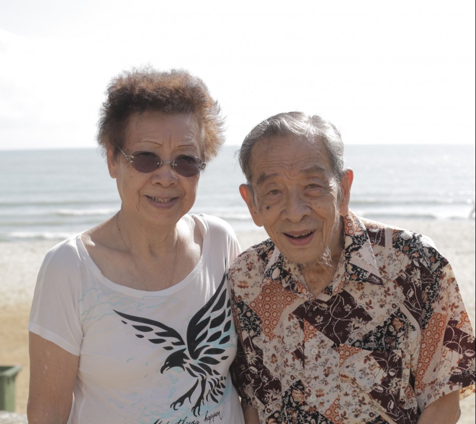 Etheline and her husband at Teluk Cempedak in Kuantan, where she tells us the Japanese buried the bodies of ‘traitors’.