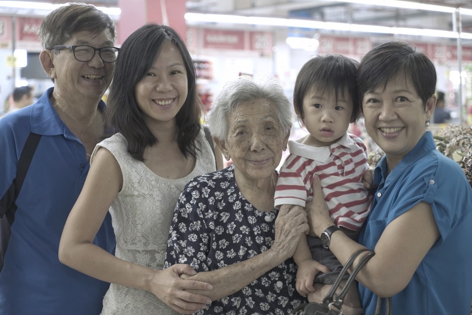Four generations in one picture: Tan (in white) says Low (centre) likes to revisit Salak South from time to time.