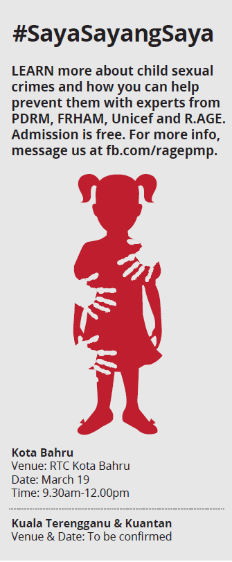 Experts from the Royal Malaysian Police, the Federation of Reproductive Health Associations Malaysia (FRHAM), Unicef, Digi and R.AGE will be available to answer questions from attendees.