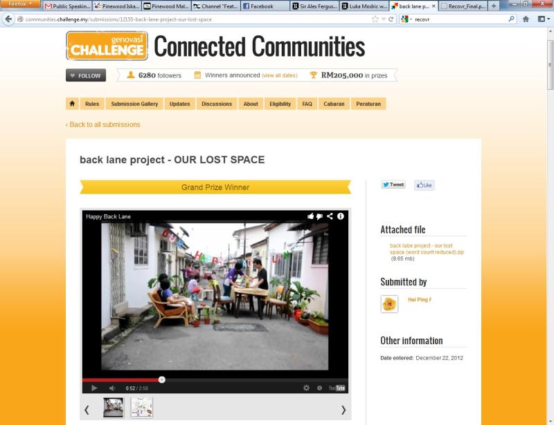 Foo Hui Ping won first prize in the Genovasi Challenge competition with her "Our Lost Space" idea, which sees people making their home's back lanes a creative useful space.