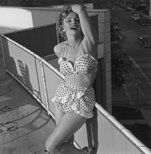 NEW YORK CITY – MARCH 1955: American actress Marilyn Monroe (1926 – 1962) leans over the balcony of the Ambassador Hotel in March 1955 in New York City, New York. (Photo by Michael Ochs Archives/Getty Images)