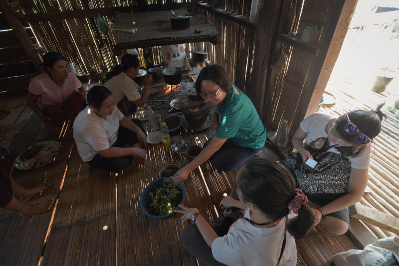 World Vision Malaysia staff sharing a meal with the people of Mae Sariang.
