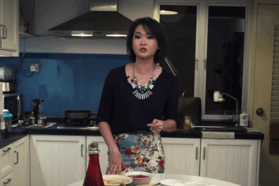 3. Sauté the paste in palm oil till fragrant. When cool, combine chili paste with shelled prawns, egg white, oil, tomato paste, coconut cream and puree in the food processor till fine. Set aside.