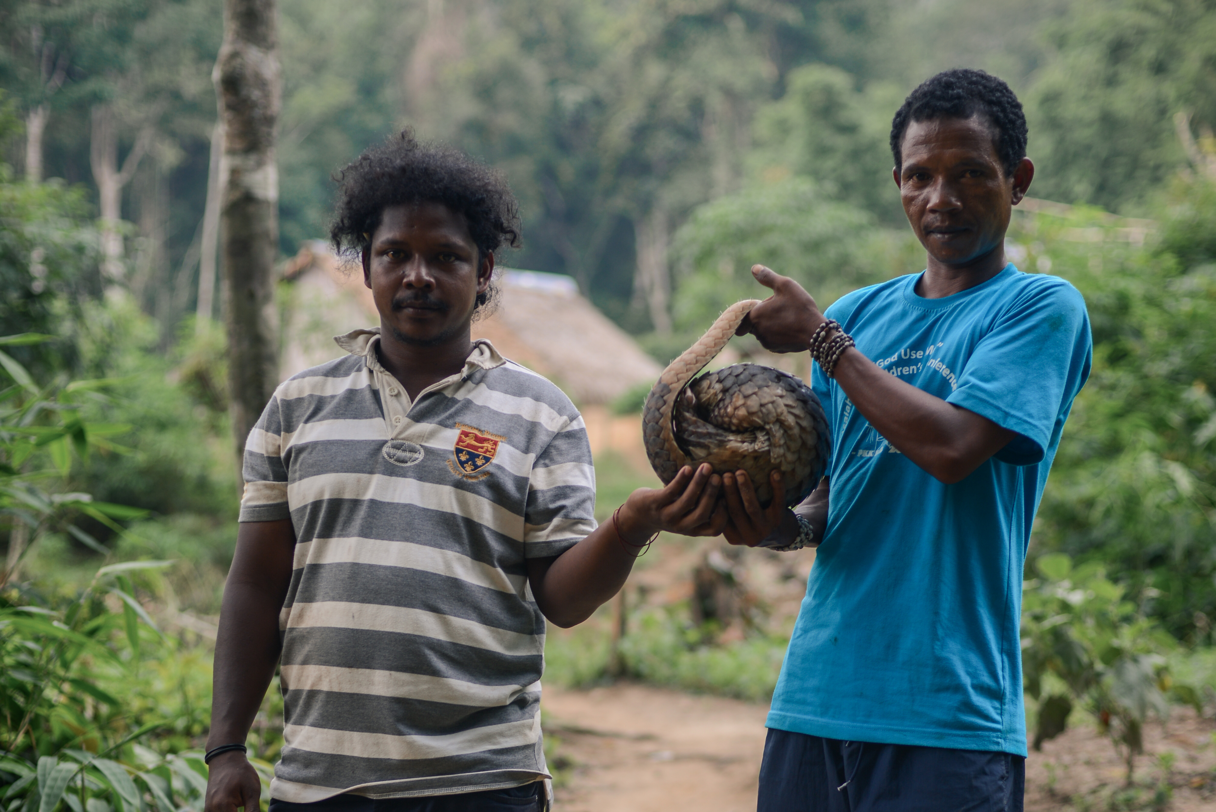 Fendi – the hunter who spotted the tracks, climbed up a tree, hacked off the interfering branches, and finally tossed the pangolin down to the waiting entourage – is the hero today. He has found livelihood.