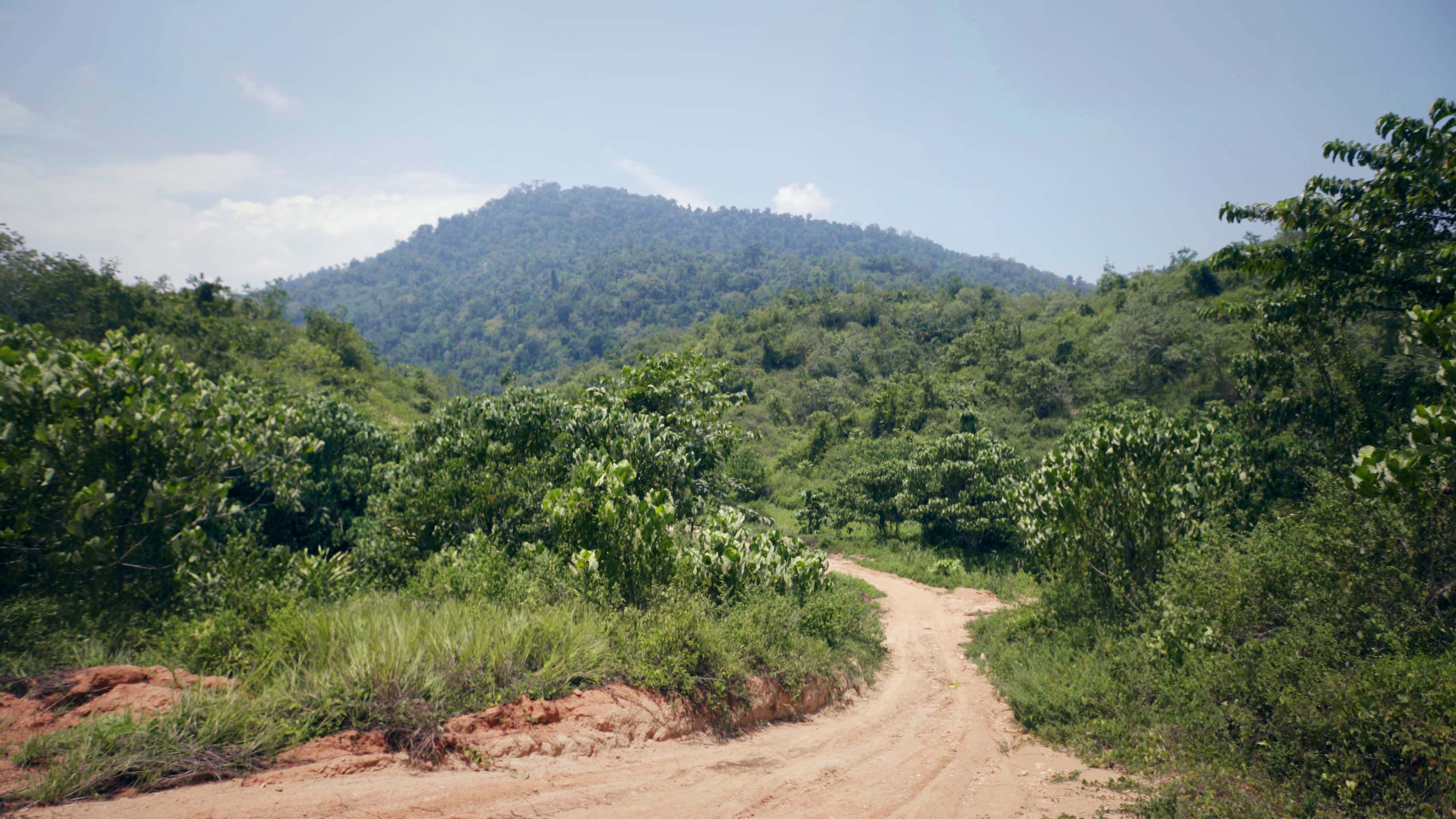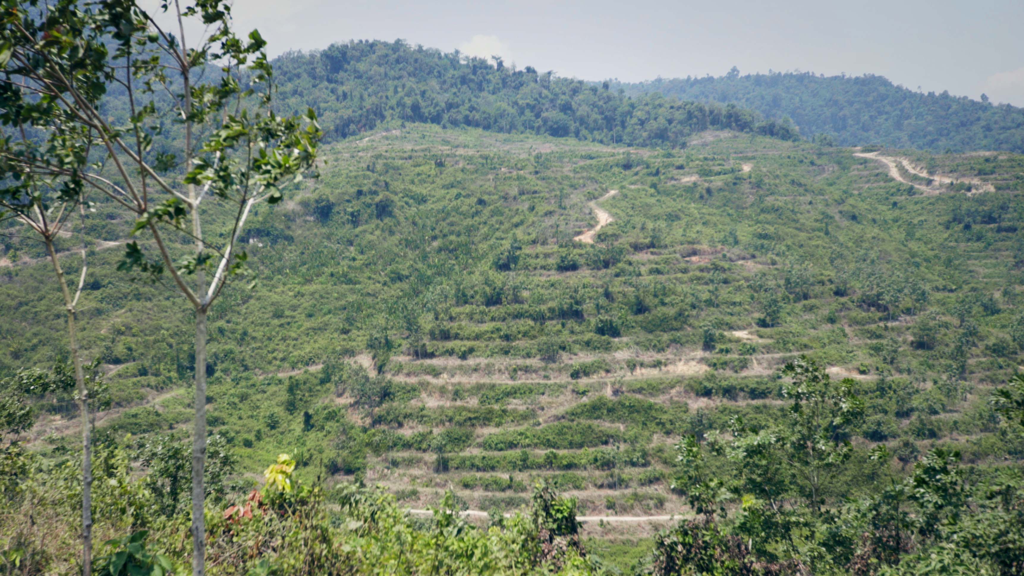 “They cross this road to look for food, then head back there to sleep,” says Anjang pointing at a distant hill still covered with rainforest. Whenever they cross the road, they leave telltale signs that experienced hunters can track.