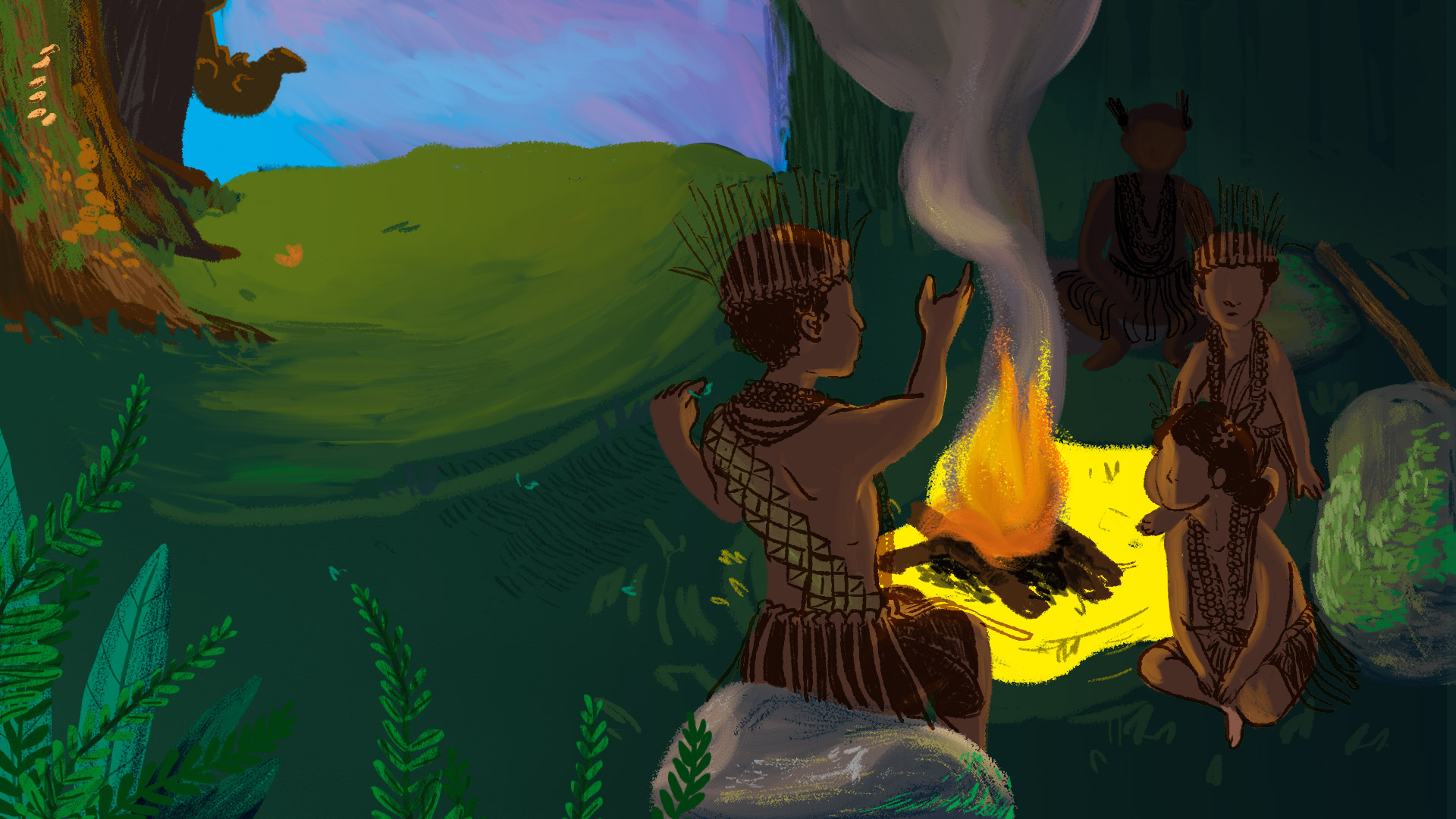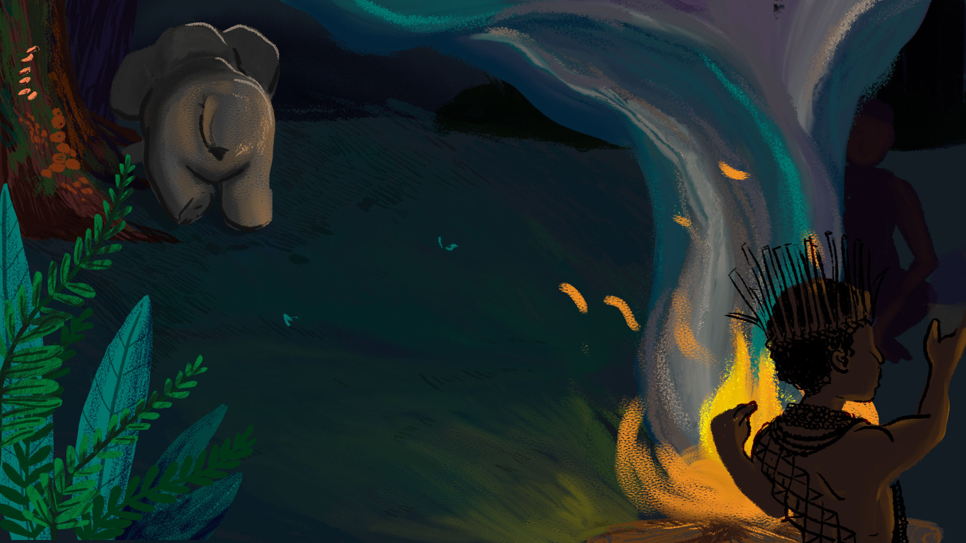 The bonfire slows, and the village elders come to the end of their story. The night will turn chilly soon, and the insects louder. Then the sky will slip across the unmoving earth and bring the morning.