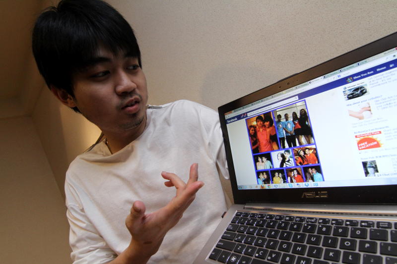 Political activist Shen Yee Aun showing a derogatory Facebook banner with photos copied from his personal Facebook account. Shen claims they are the work of political ‘cybertroopers’.