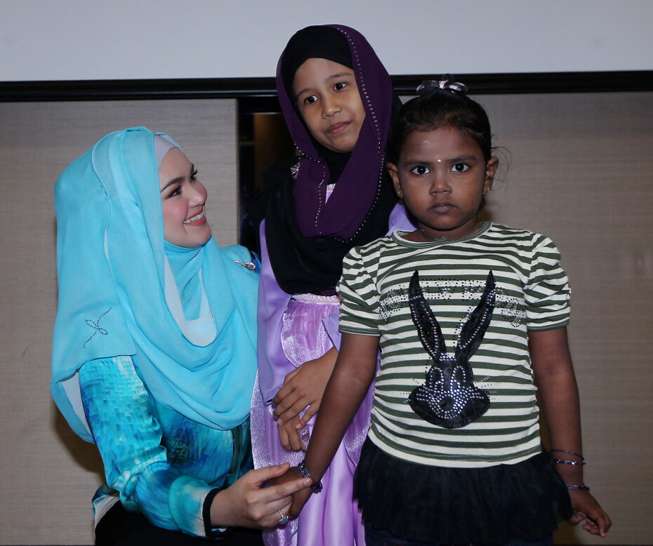 R.AGE caught up with Siti at a press conference to celebrate the success of SimplySiti Di Hati, an annual campaign by her cosmetic company, SimplySiti. Three children selected by Institut Jantung Negara – Logasree Vijayan, 4, Andrew Lim, 13, and Aida Zakiah Mohamed Amin, 8 – were able to undergo much-needed surgeries thanks to the campaign.