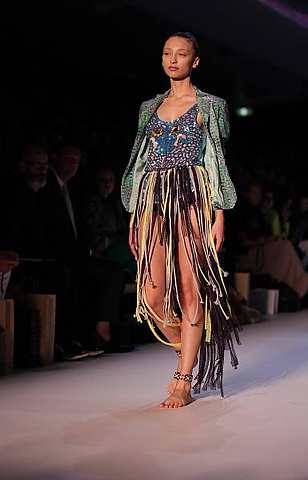 Another designer at the Australian Fashion Week was Emma Mulholland, who showcased a stringy skirt paired with a tank top and jacket. The Pocahontas-like piece is really for those who are more daring with their dress sense, as the “skirt” barely covers anything. Still, there’s no harm in trying it out, and could totally work if you were to put on a pair of nude-coloured leggings.