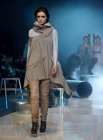 Meanwhile, at the Fashion Philosophy Fashion Week in Lodz, Poland, designer Lukasz Jemiola came up with one design that made me think of Robin Hood and his merry men.