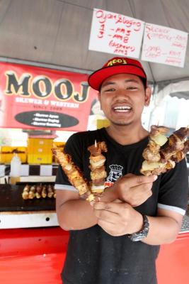 At Ramadan bazaars, however, Mooj only operates a regular stall, not the mobile kitchen. Even then, he still sells about 400 skewers a day.