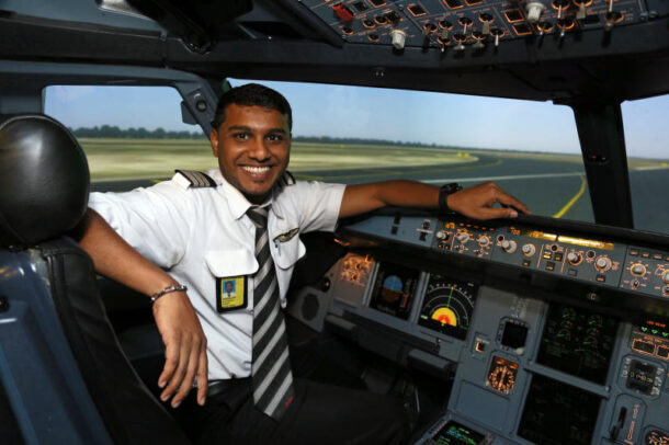 “All pilots have to spend hours in these simulators for routine training, to equip them with the necessary skills to deal with bad weather or technical difficulties in the most efficient manner possible,” he said, after setting up the system for senior first officers Pragalath Kalimuthu and Hannah Cherly Murray to show us how it’s really done.