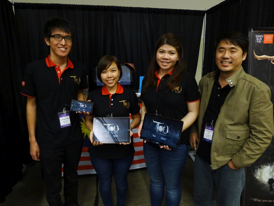 Team SwinDesign with their Tou: the Sacrifice game. From left: Landon Chia, Sim Jia Ying, Stella Wang and John Hii.