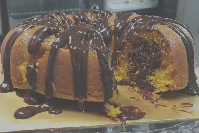 Eggless Chocolate Marble Bundt Cake using Palm Oil