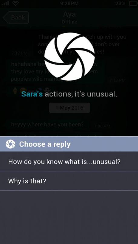 The idea of the game is that you’ve found the phone of a girl, “Sara”, who has gone missing. You have to use the information on the phone, and its slightly creepy IRIS artificial intelligence programme (that’s Siri spelled backwards, by the way), to find her.