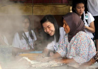 While it was indeed an interesting sight watching the old ladies in the shops rolling the fish paste together, some of the BRATs managed to find an even more interesting story in traditional bladesmith Ibrahim Mohammad.