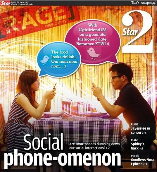 Smartphones, with their social media applications, games, high-quality cameras and god-knows-what other functions these days, are increasingly permeating our social interactions. It’s fine if you are taking pictures together over a meal, but what about sending SMSes at the dinner table, or checking on your Farmville crops over coffee, or talking about how fantastic your meal is with everyone else on Twitter, but not the person sitting right across you?